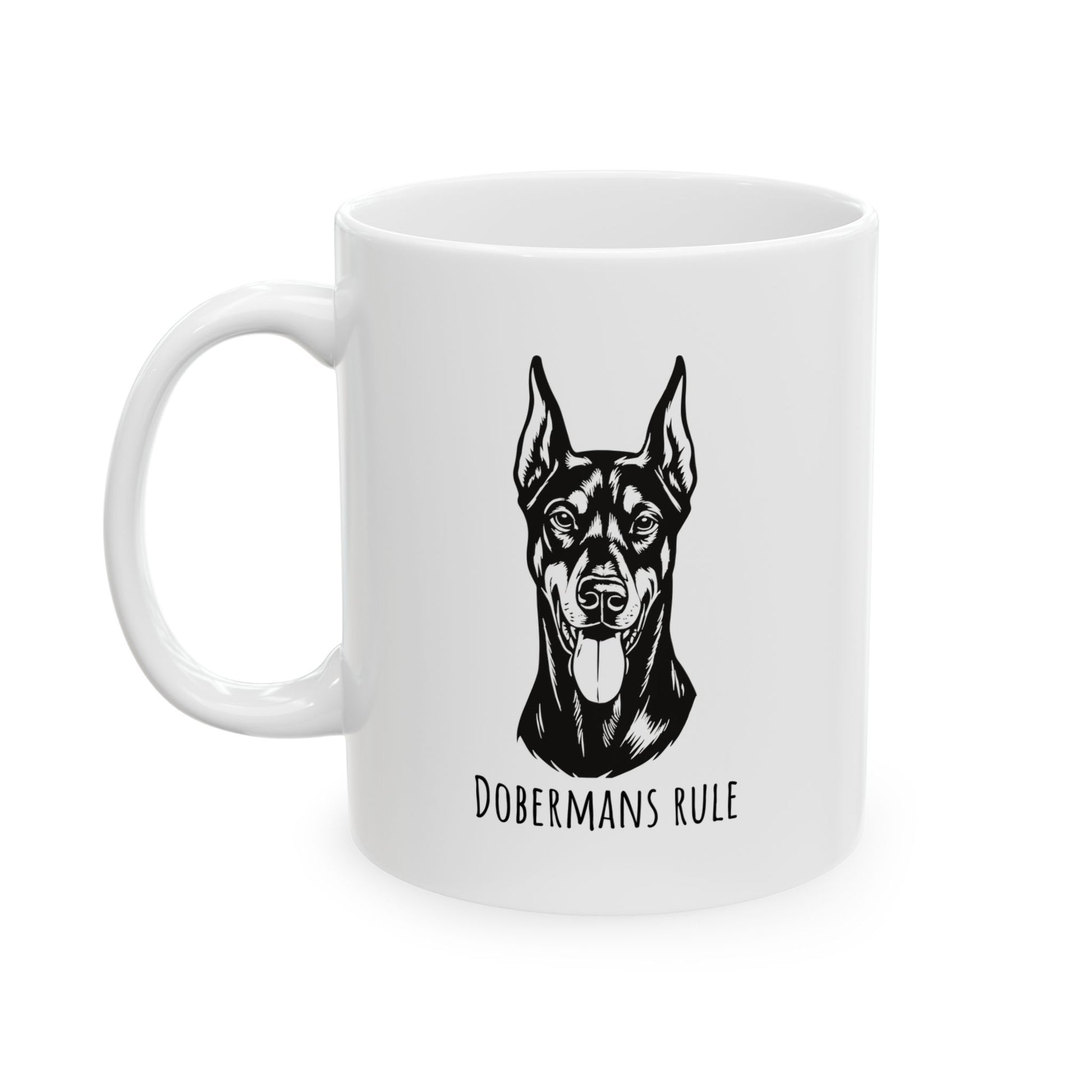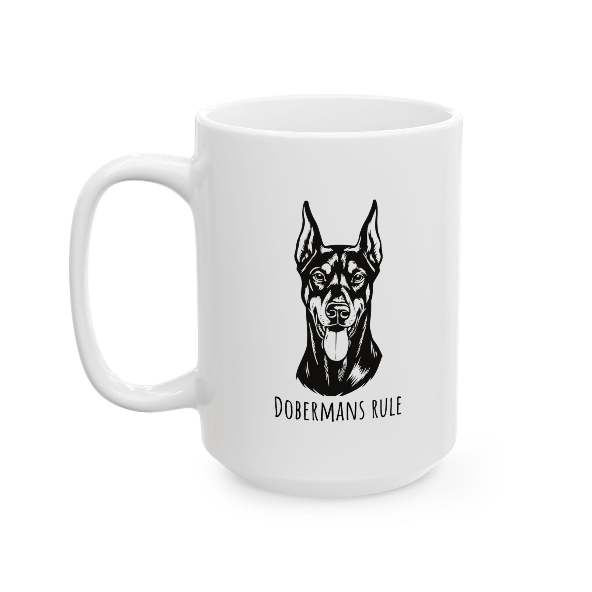 Sip your favorite drink in style with our “Dobermans Rule” ceramic mug, designed for true dog lovers and Doberman enthusiasts. Available in both 11 oz and generous 15 oz sizes, this glossy white mug showcases your love for the breed with bold, full-wrap print that brightens every coffee break. Add the “Dobermans Rule” Ceramic Mug to your cart and start every sip with pride, humor, and unmatched style — because Dobermans truly rule!