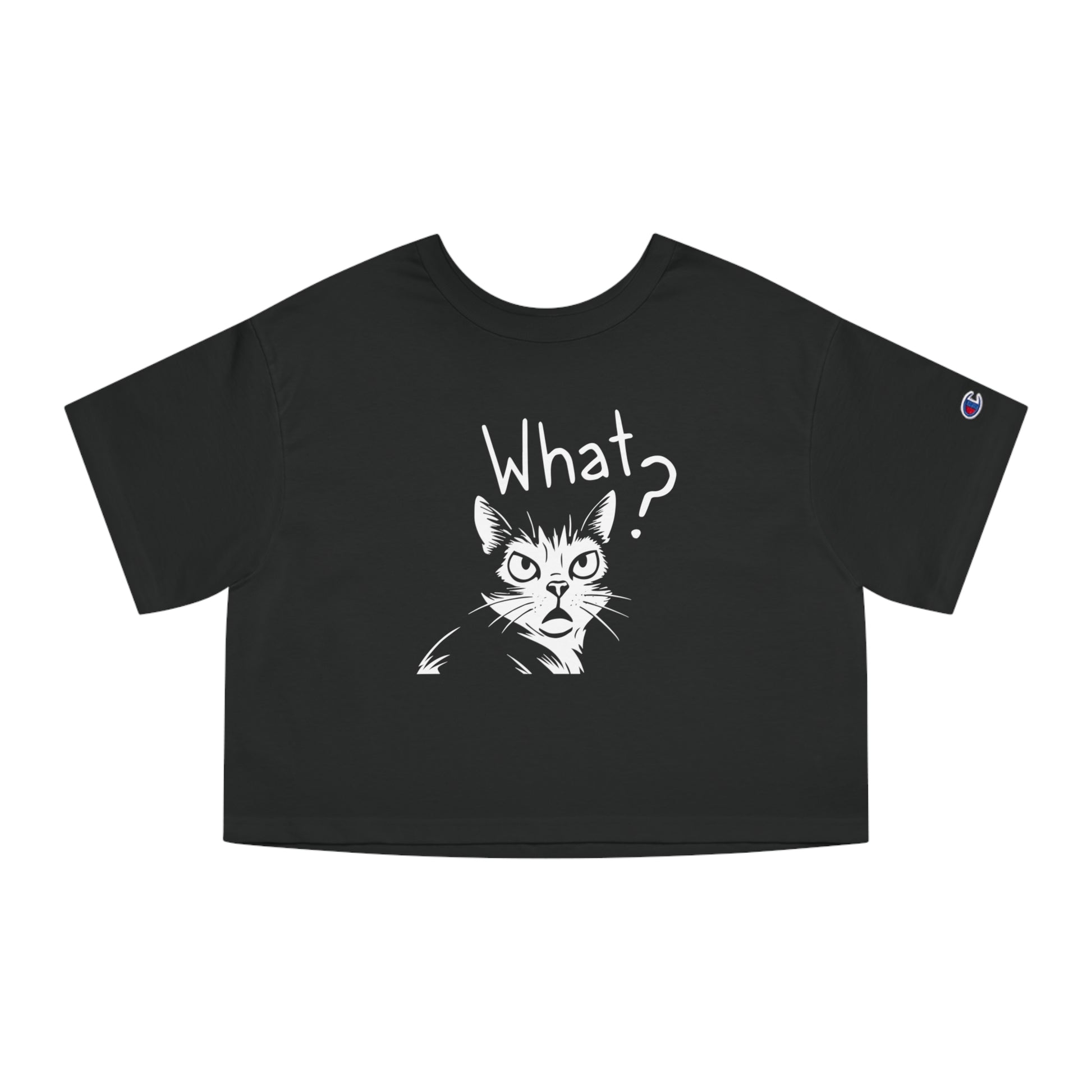 For those who love sarcasm and cats, the “What?” grumpy cat design on this Champion cropped tee is the ultimate mood piece. Made of soft cotton with Champion heritage quality, it’s a playful and edgy way to express your feline-inspired style. Perfect gift for cat lovers who adore attitude.
